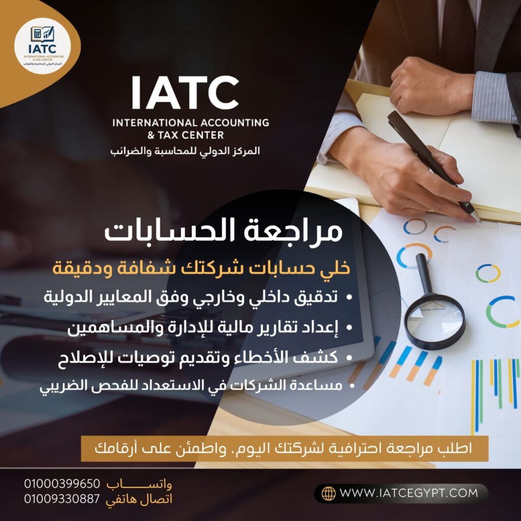 IATC المركز الدولي للمحاسبة والضرائب حلول محاسبية وضريبية ومالية متكاملة لتطوير أعمالك احجز استشارة الآن تواصل علي واتساب مع خبرة عملية تتجاوز 18 سنة، نساعدك في تأسيس شركتك وإدارة حساباتك ومراجعة التزاماتك الضريبية والمالية لضمان الامتثال الكامل وتحقيق أفضل النتائج OUR EXPERTISE استشارات محاسبية وضريبية متكاملة لشركتك تأسيس شركات 95/100 استشارات ضريبية 95/100 مراجعة وتدقيق 80/100 Testimonials المركز الدولي للمحاسبة والضرائب سنة خبرة عملية في المحاسبة والضرائب 0 + عميل سعيد بخدماتنا 0 + نسبة رضا العملاء 0 + شركة تعتمد علينا بشكل مستمر 0 + What we do خدماتنا الاستشارية والمحاسبية 01. تأسيس شركاتتأسيس شركتك من البداية وفق القوانين المصرية. 02. استشارات وحلول ضريبيةإدارة التزاماتك الضريبية بدقة وحلول عملية لتفادي المخاطر. 03. استشارات وحلول تأمينحلول تأمينية متخصصة لحماية استثماراتك. 04. استشارات ماليةدعم مالي واستراتيجيات لتطوير شركتك. 05. مراجعة وتدقيقتدقيق شامل وشفاف لحساباتك وتقاريرك. 06. دراسات جدوىإعداد دراسات جدوى دقيقة لمشاريعك. 07. شركات المقاولات(الاتحاد المصري للتشييد والبناء – تجديد – رفع فئة – تقديم أول مرة). 08. تمويل الشركاتمساعدة الشركات في تجهيز جميع الأوراق الخاصة بالتمويلات 09. تسجيل العلامات التجاريةنساعدك على حماية علامتك التجارية رسمياً وبشكل سريع وآمن. 10. خدمة الرخص التجارية والصناعيةنقدم لك الدعم الكامل لاستخراج الرخص المطلوبة لمشروعك بسهولة. عملاؤنا السابقون شراكات نفخر بها — معًا ننجز أكثر 0 عميل ترتيب: أبجدي (أ→ي) ترتيب: أبجدي (ي→أ) الأحدث إضافة معرض الصور تحتاج استشارة ؟ احجز اجتماعك الآن احجز الآن تواصل معنا